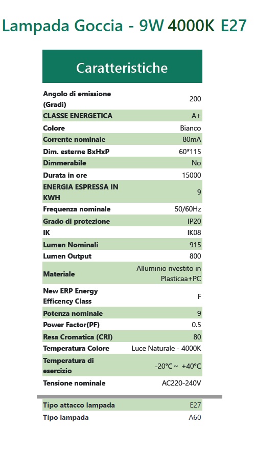 Lampada Goccia - 9W 6500K E27