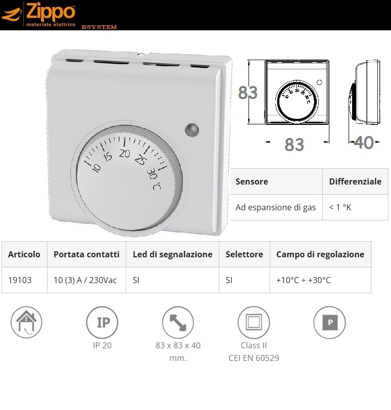 19103 TERMOSTATO MECCANICO AMBIENTE CON SPIA CALDAIA MANOPOLA