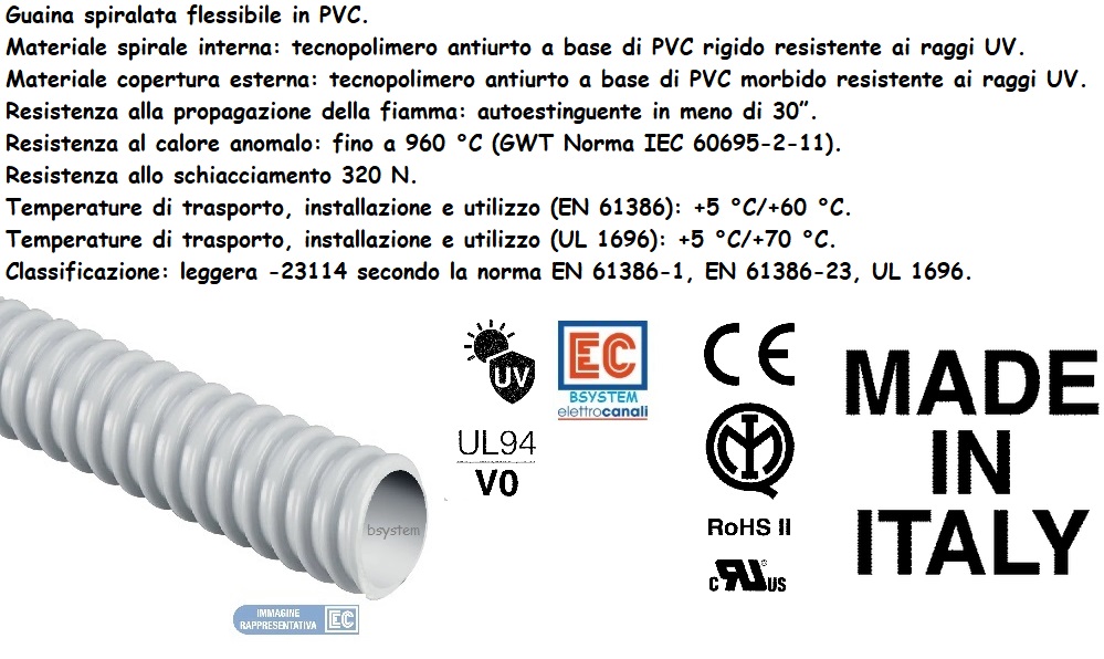 30 metri GUAINA 12mm SPIRALATA FLESSIBILE PVC GRIGIA IMPIANTI ELETTRICI ECGFE12