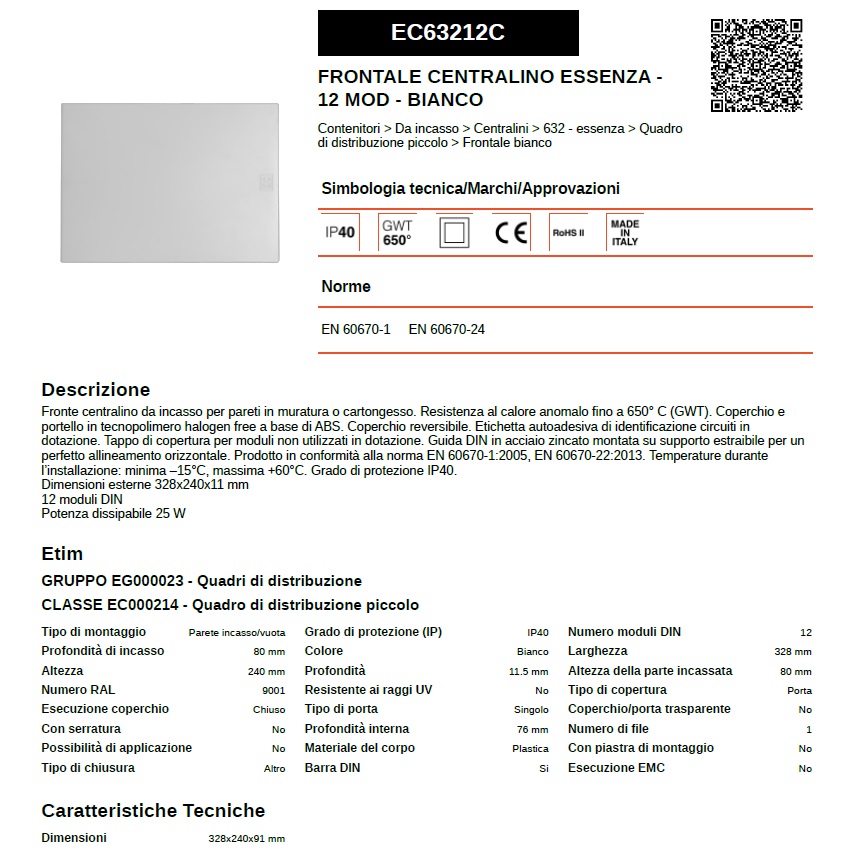 63212C FRONTALE CENTRALINO 12 MODULI BIANCO ELETTROCANALI