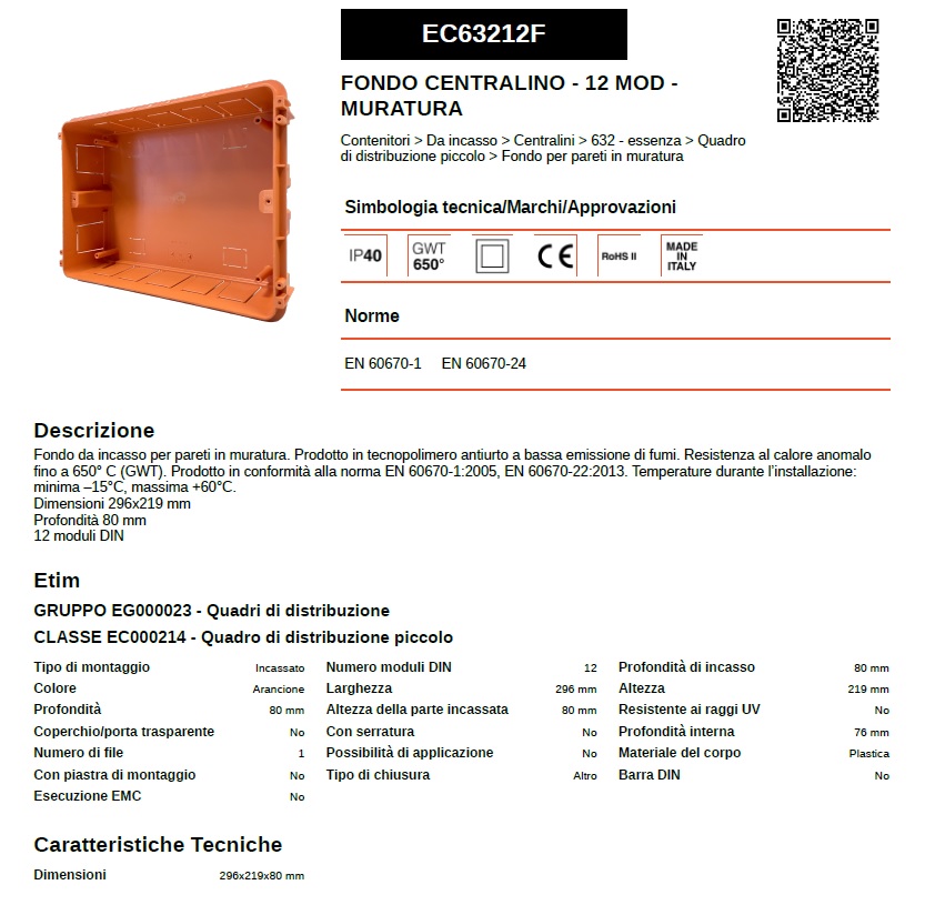 63212F SCATOLA CENTRALINO 12 MODULI ELETTROCANALI
