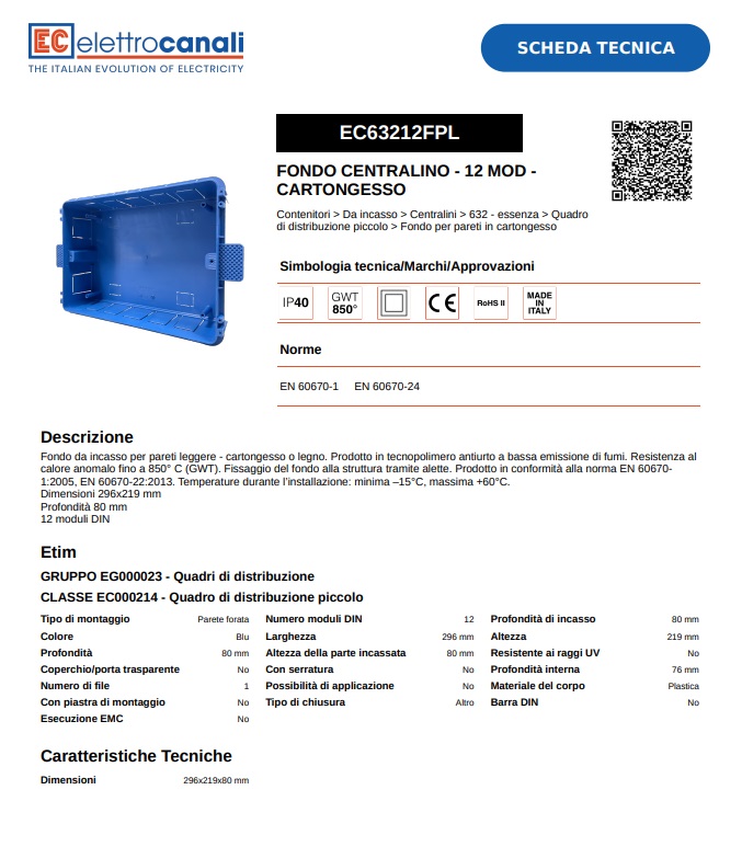 63212FPL SCATOLA CARTONGESSO CENTRALINO 12 MODULI ELETTROCANALI