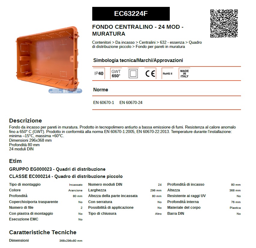 63224F SCATOLA CENTRALINO 24 MODULI ELETTROCANALI