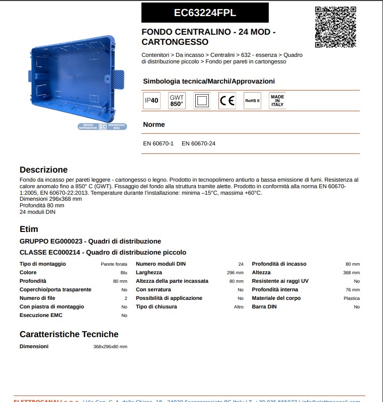 63224FPL SCATOLA CARTONGESSO CENTRALINO 24 MODULI ELETTROCANALI