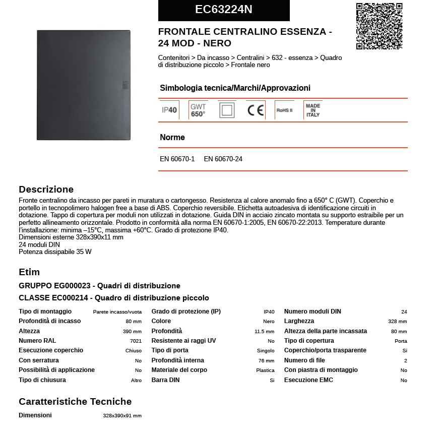 63224N FRONTALE CENTRALINO 24 MODULI NERO ELETTROCANALI