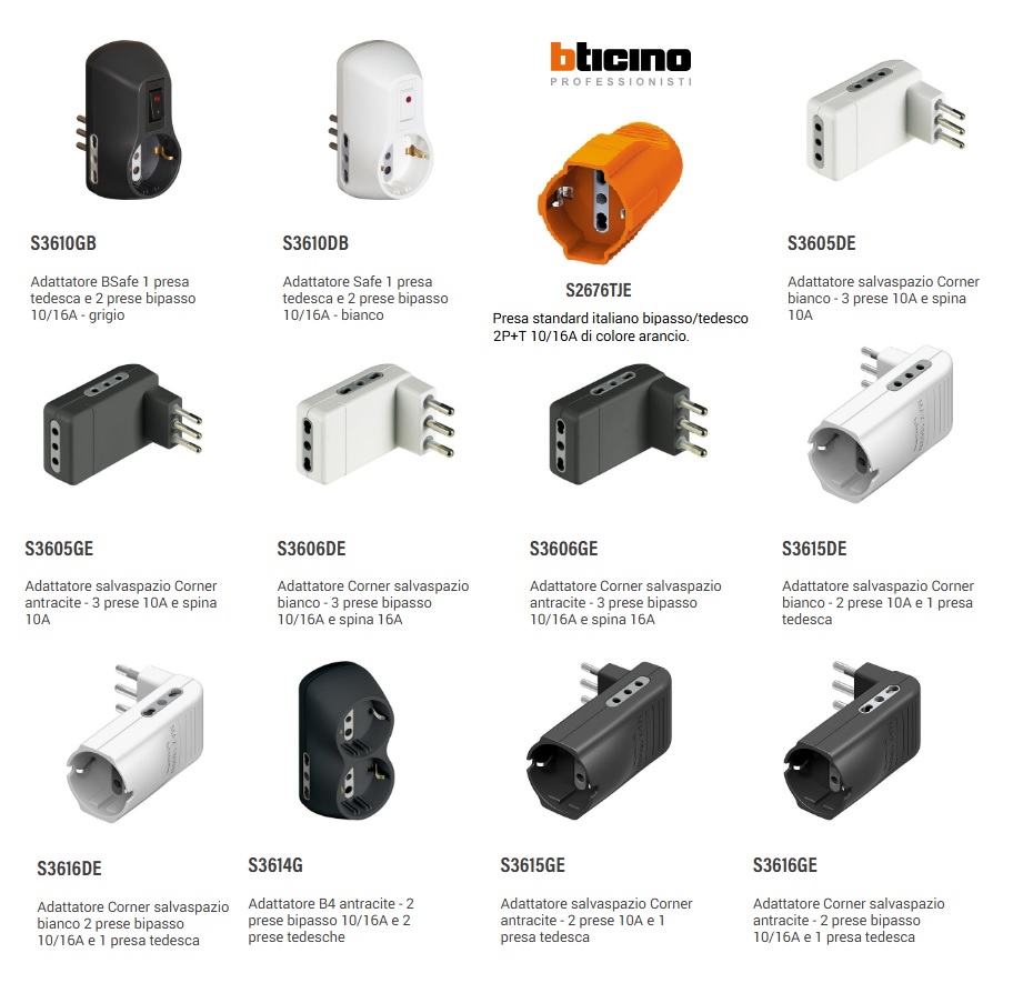 ADATTATORE SALVASPAZIO 10/16A+SCHUKO BTICINO S3616DE BIANCO