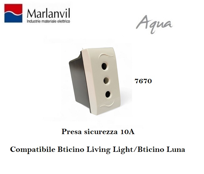 AQUA PRESA 10A COMPATIBILE BTICINO LIVING LUNA MARLANVIL