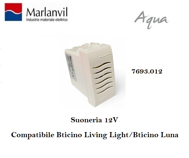 AQUA SUONERIA CAMPANELLO 12V COMPATIBILE BTICINO LIVING LUNA MARLANVIL