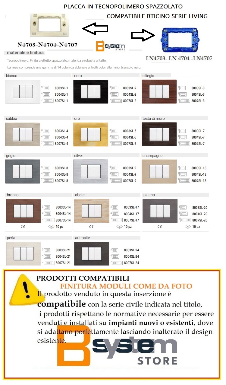 ART PLACCA IN TECNOPOLIMERO SPAZZOLATO COMPATIBILE BTICINO LIVING