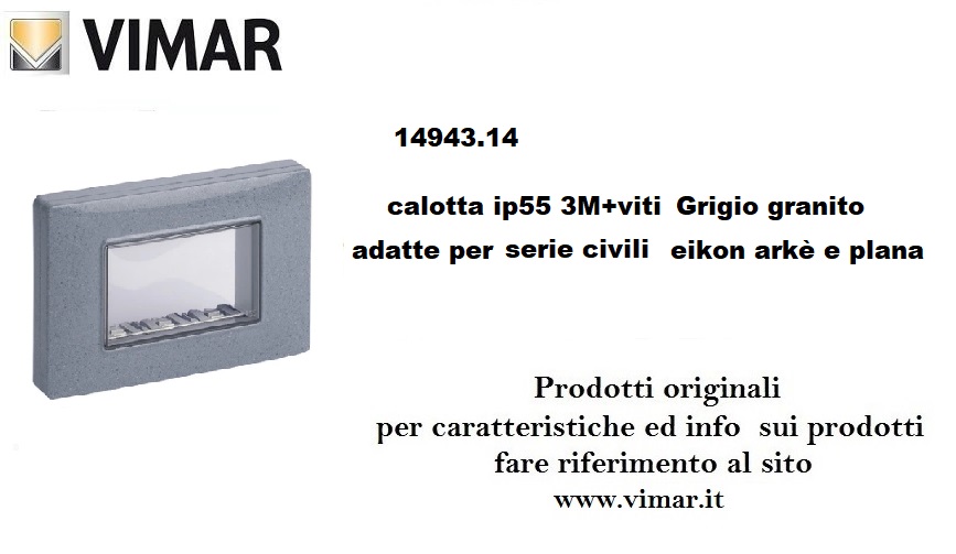 CALOTTA 3M IP55 VIMAR PLANA ARKE' EIKON GRIGIO GRANITO 14943.14