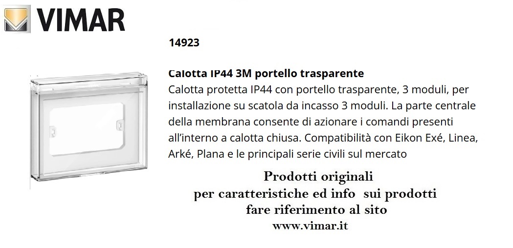 CALOTTA 3M PORTELLO TRASPARENTE IP44 VIMAR 14923