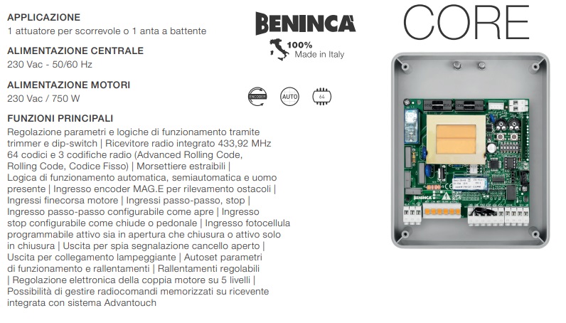 CENTRALE DI COMANDO 230Vac BENINCA CANCELLI BATTENTE SCORREVOLI