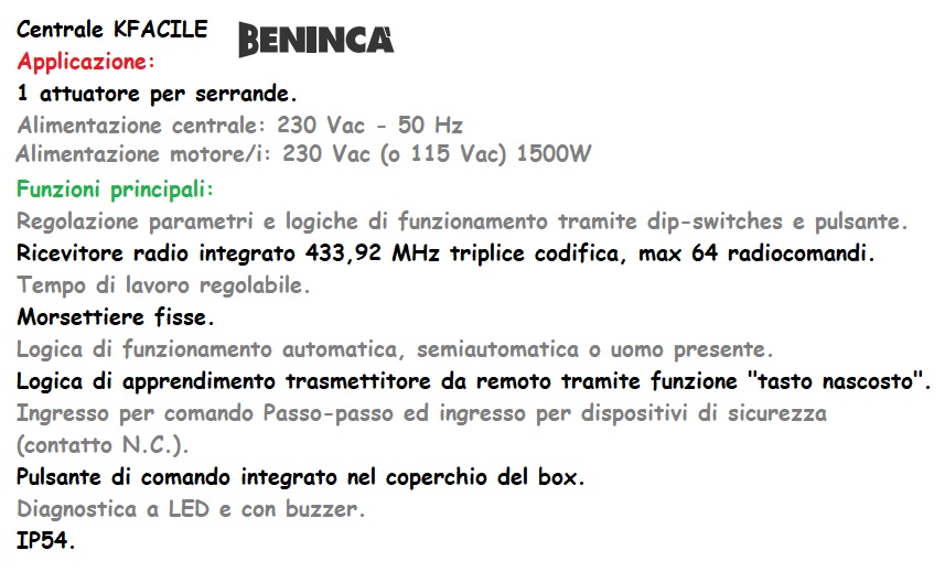 CENTRALE SERRANDA 230Vac BENINCA + 2 TOGO2A KFACILE