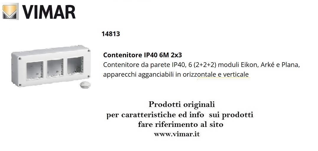 CONTENITORE IP40 6M 2X3 PER SERIE VIMAR EIKON, PLANA E ARKè 14813