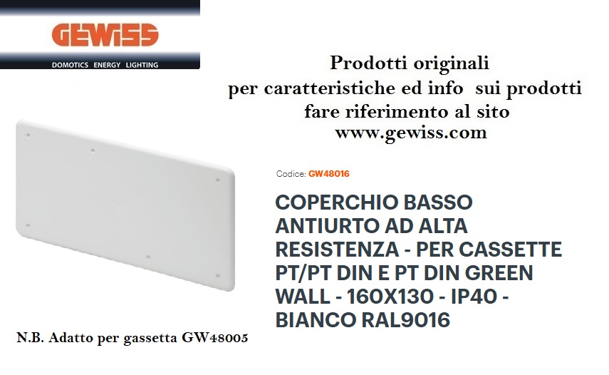 COPERCHIO 160X130 GEWISS CASSETTA INCASSO GW48016