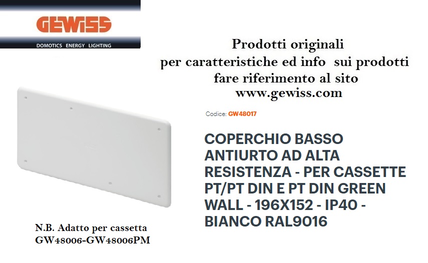 COPERCHIO 196X152 GEWISS CASSETTA INCASSO GW48017
