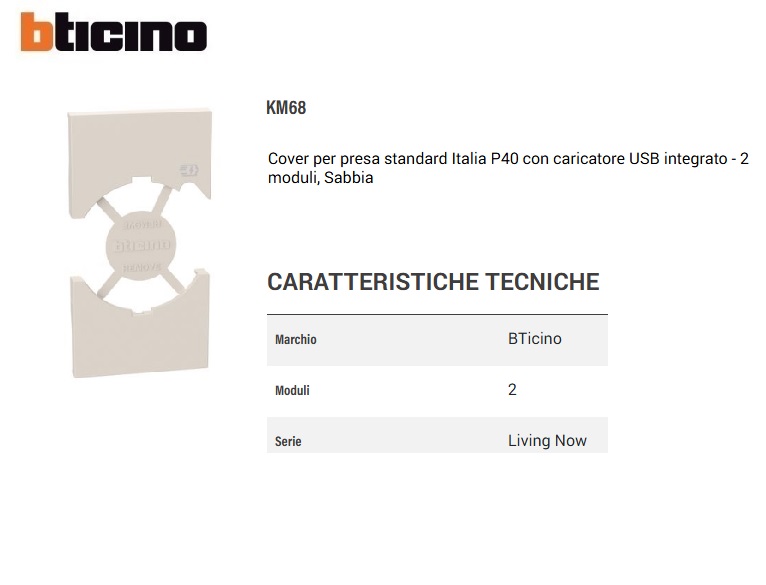 COVER PRESA SCHUKO + USB LIVING NOW BTICINO SABBIA KM68
