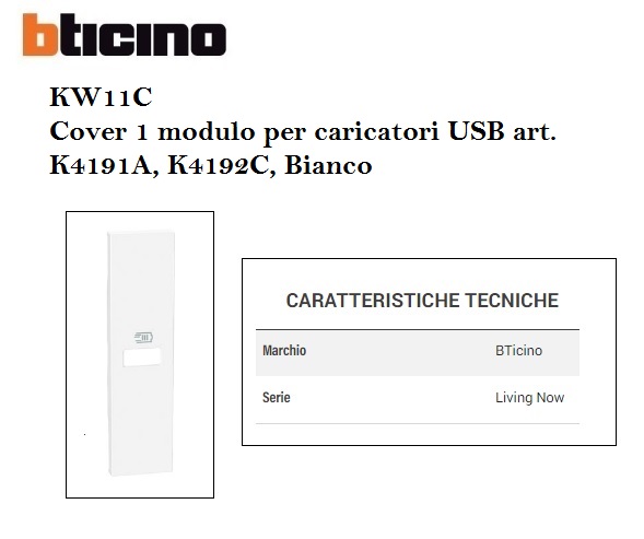 COVER USB TIPO A 15W BTICINO LIVING NOW BIANCO KW11C