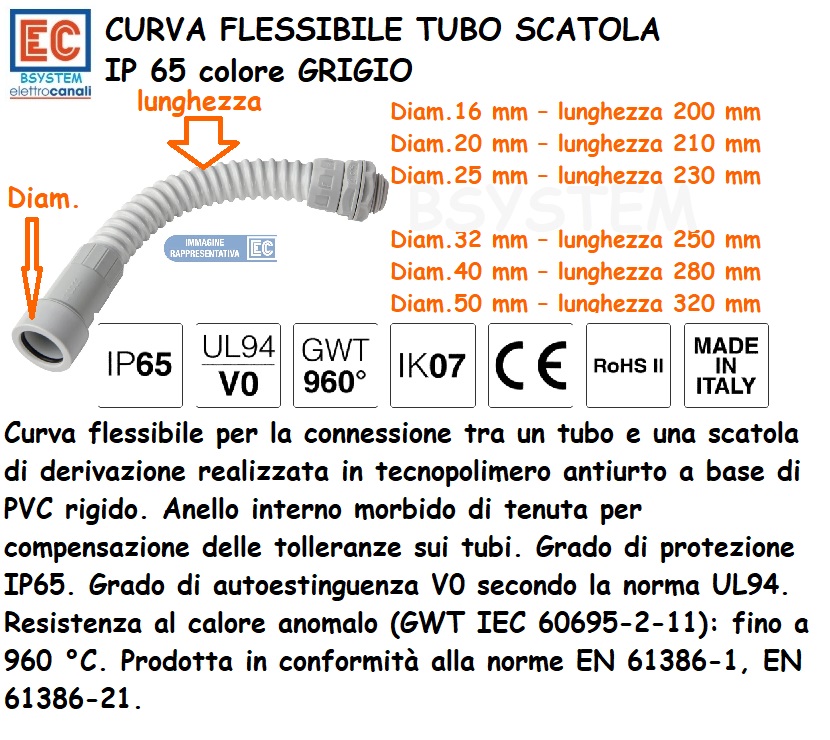 CURVA FLESSIBILE 25 mm TUBO CASSETTA IP65 GUAINA EC75525