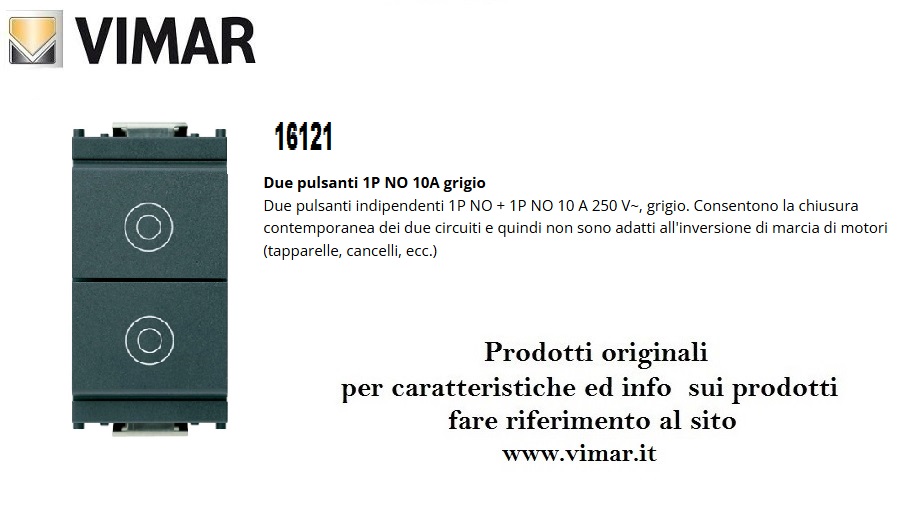 DOPPIO PULSANTE 1P NO 10A 16121 GRIGIO