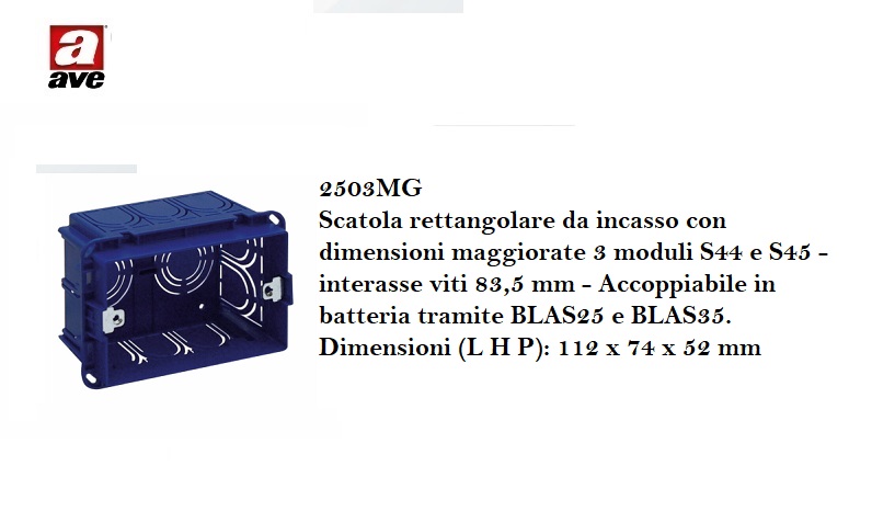 SCATOLA AVE INCASSO MAGGIORATA 3 MODULI 2503MG