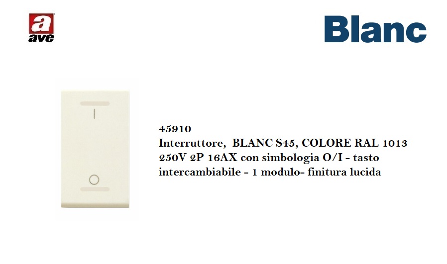 INTERRUTTORE BIPOLARE 16A AVE S45 BLANC 45910