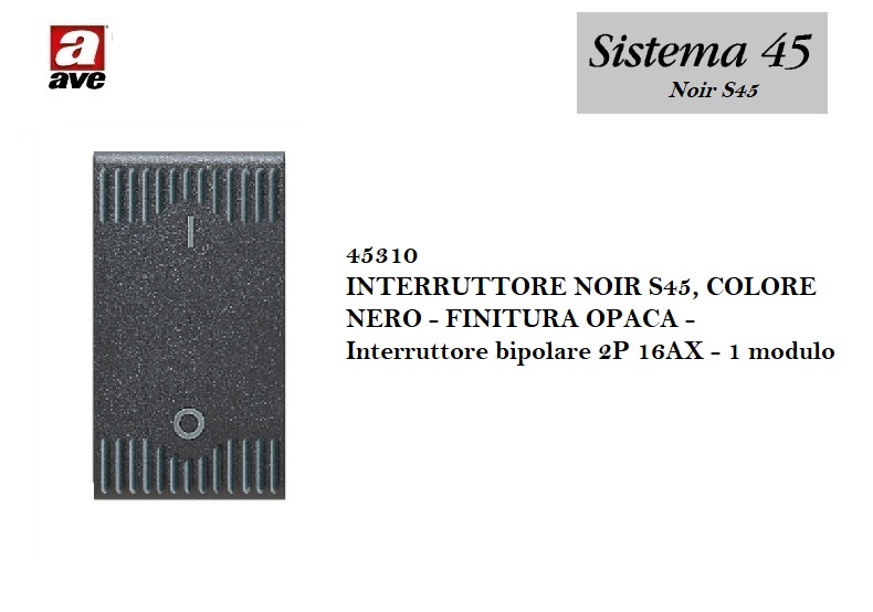 INTERRUTTORE BIPOLARE 16A AVE S45 NOIR 45310 NERO