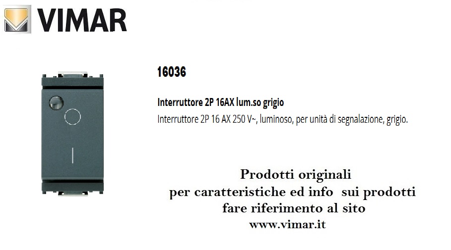 INTERRUTTORE BIPOLARE LUMINOSO 16AX 16036 VIMAR IDEA GRIGIO