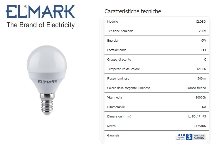 LAMPADA 6W E14 6400K LED LUCE FREDDA GLOBO