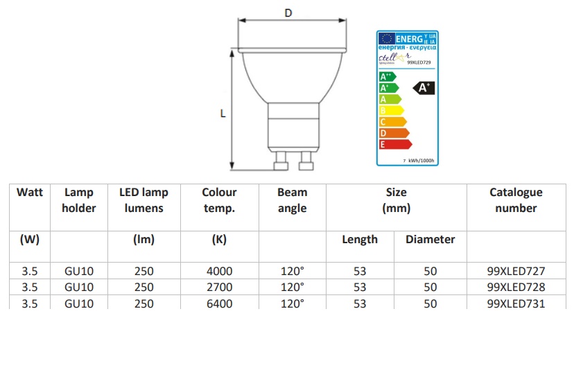 LAMPADINA GU10 LED 3,5W 6400K FARETTO 300lm 99XLED727