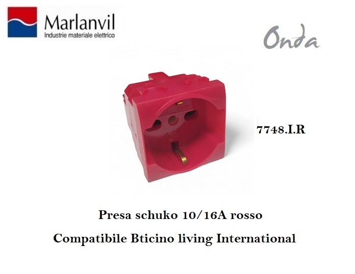 ONDA PRESA SCHUKO ROSSO COMPATIBILE BTICINO LIVING MARLANVIL