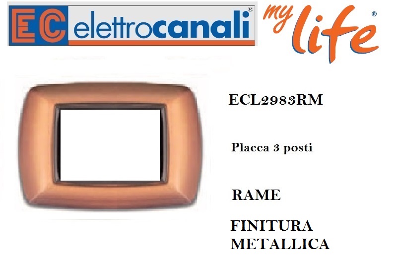 PLACCA 3 POSTI MY LIFE ELETTROCANALI RAME