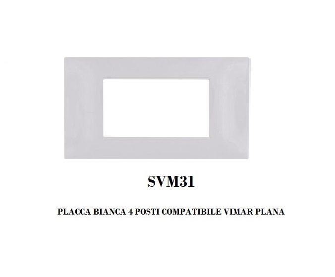 PLACCA 4 POSTI BIANCA PVC COMPATIBILE VIMAR PLANA