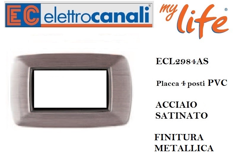 PLACCA 4 POSTI MY LIFE ELETTROCANALI ACCIAIO SATINATO
