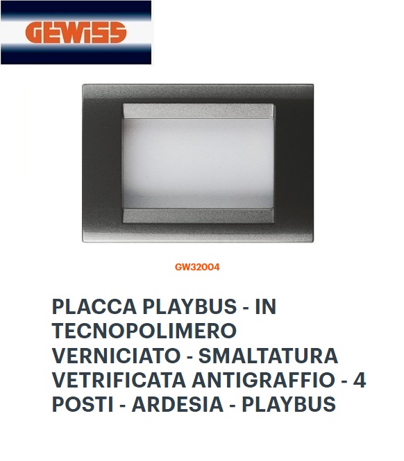 PLACCA 4P GRIGIO ARDESIA GEWISS PLAYBUS GW32004