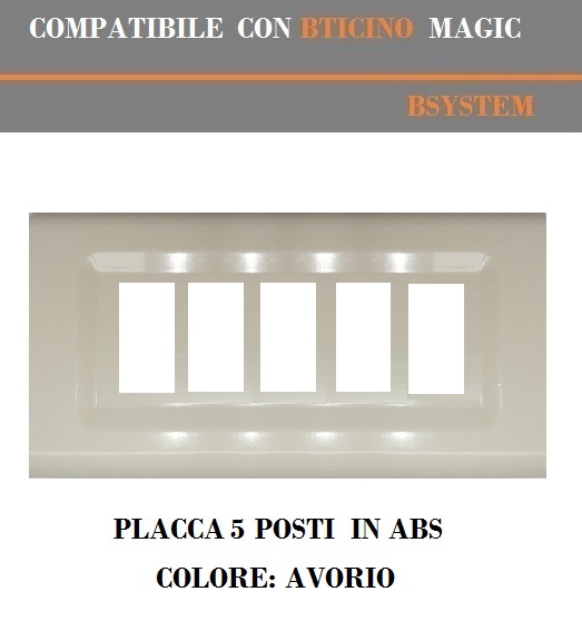 PLACCA 5P AVORIO PVC COMPATIBILE BTICINO MAGIC
