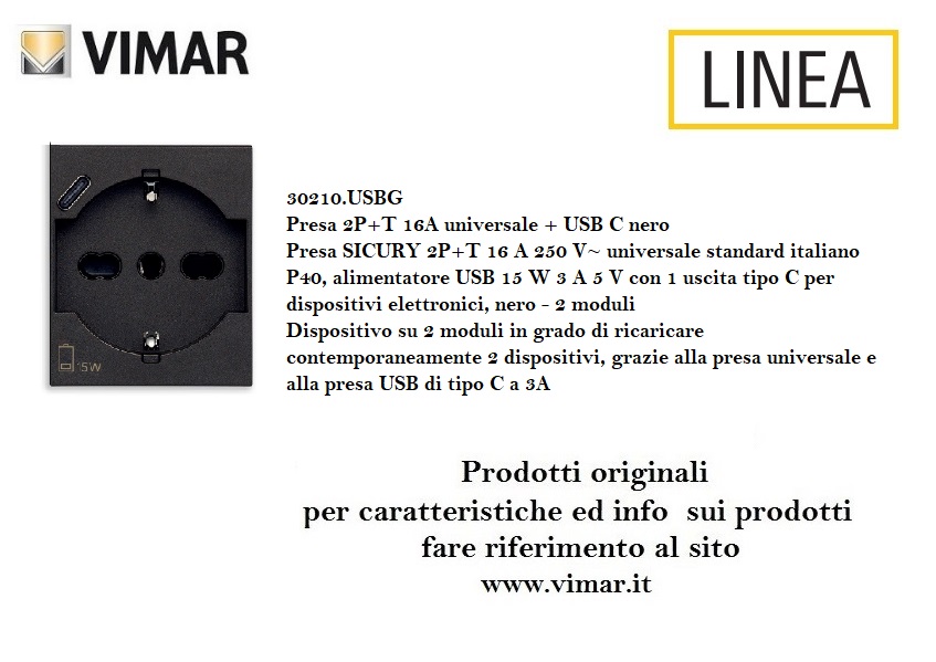 PRESA SCHUKO CON USB VIMAR LINEA 30210.USBG GRIGIO