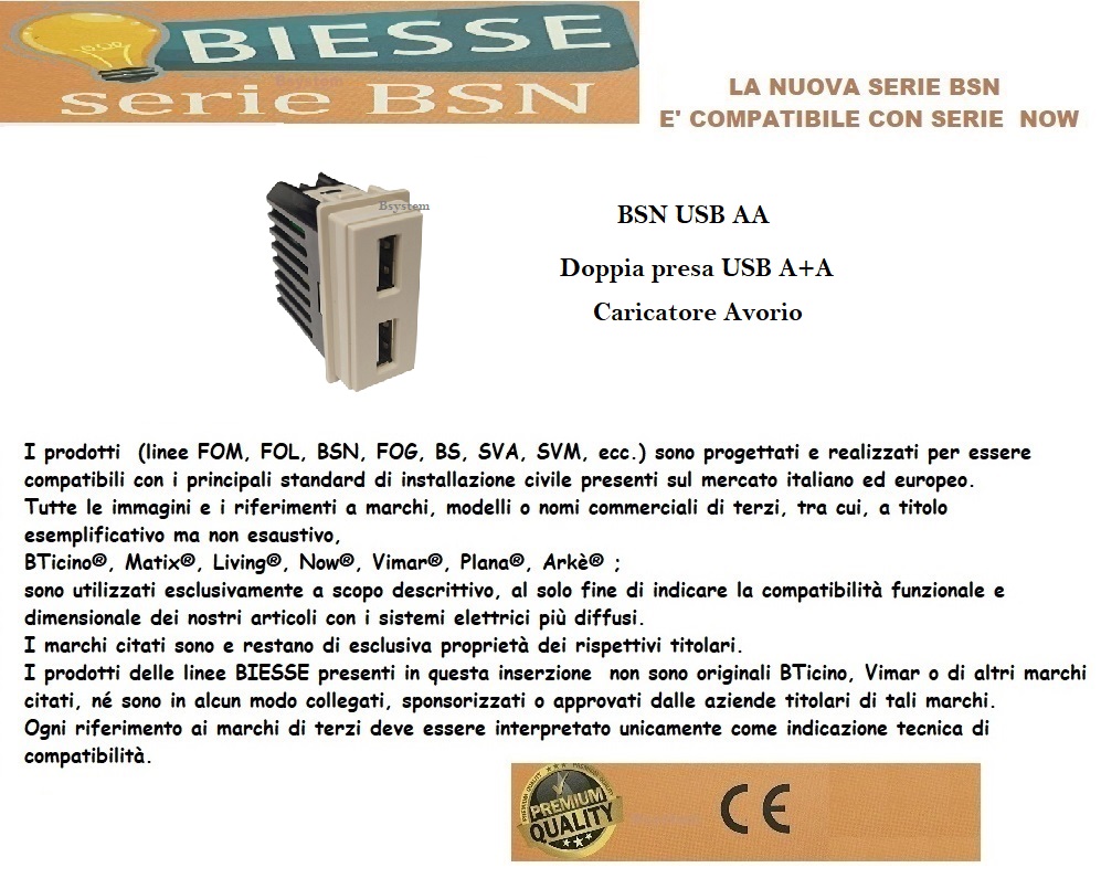 PRESA USB TIPO A+A BSN COMPATIBILE LIVING NOW BTICINO sabbia