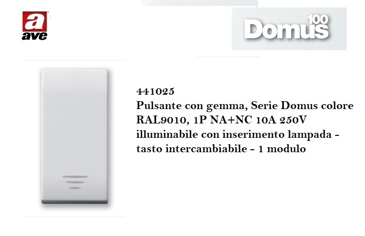 PULSANTE 1P NA+NC 10A AVE DOMUS 441025