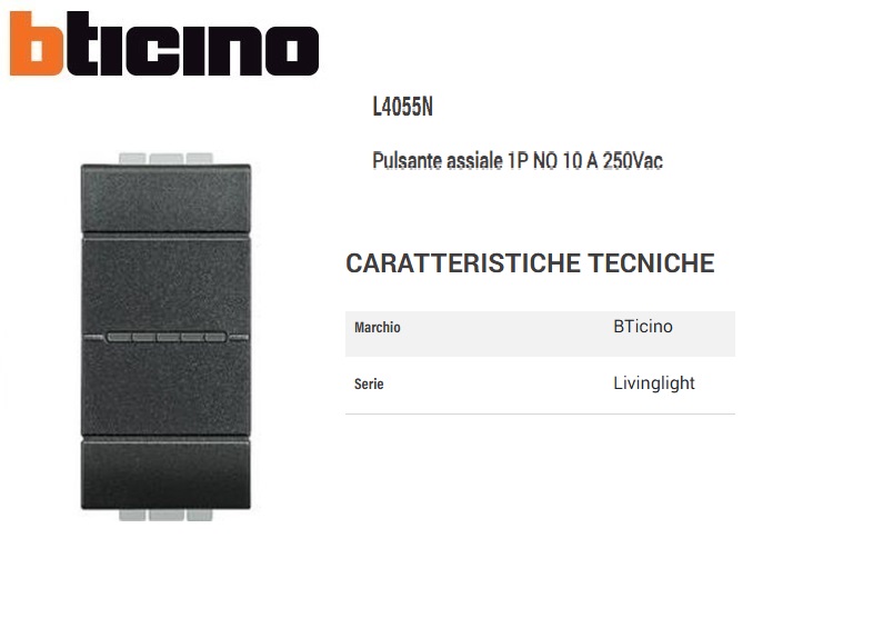 PULSANTE ASSIALE 10A BTICINO LIVING INTERNATIONAL L4055N