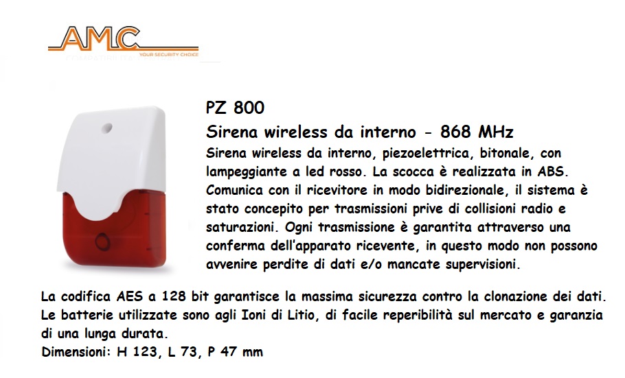 PZ800 SIRENA WIRELESS AMC DA INTERNO