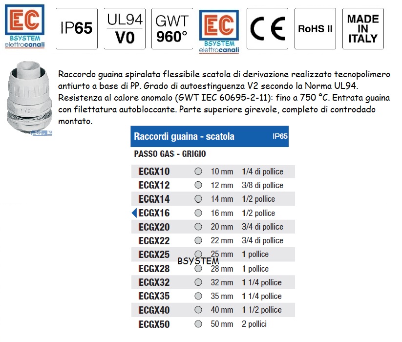 RACCORDO 50 mm GUAINA SCATOLA CASSETTA IP65 TUBO ECGX50