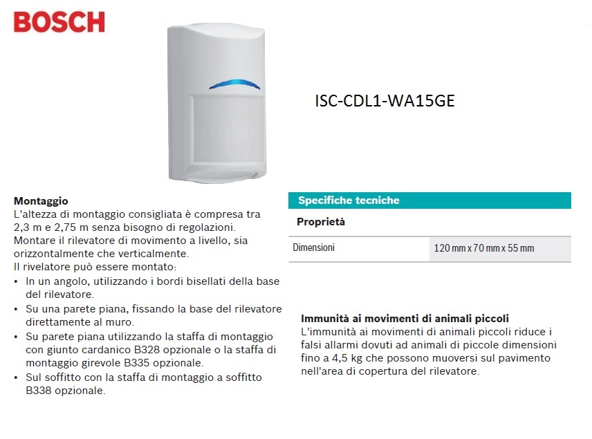 RIVELATORE DI MOVIMENTO BOSCH TRITECH PET IMMUNE CDL 2A 15G ex ISC-CDL1-WA15GE