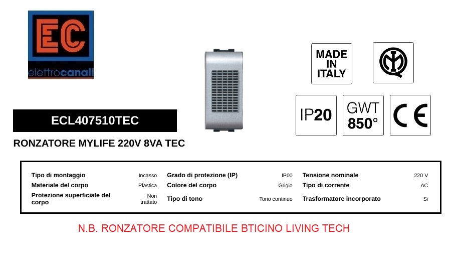 RONZATORE 220V MYLIFE COMP BTICINO LIVING INTERNATIONAL