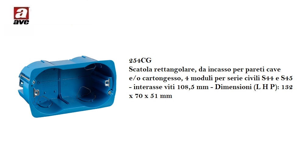 SCATOLA 4 POSTI PER CARTONGESSO AVE S44 S45 254CG