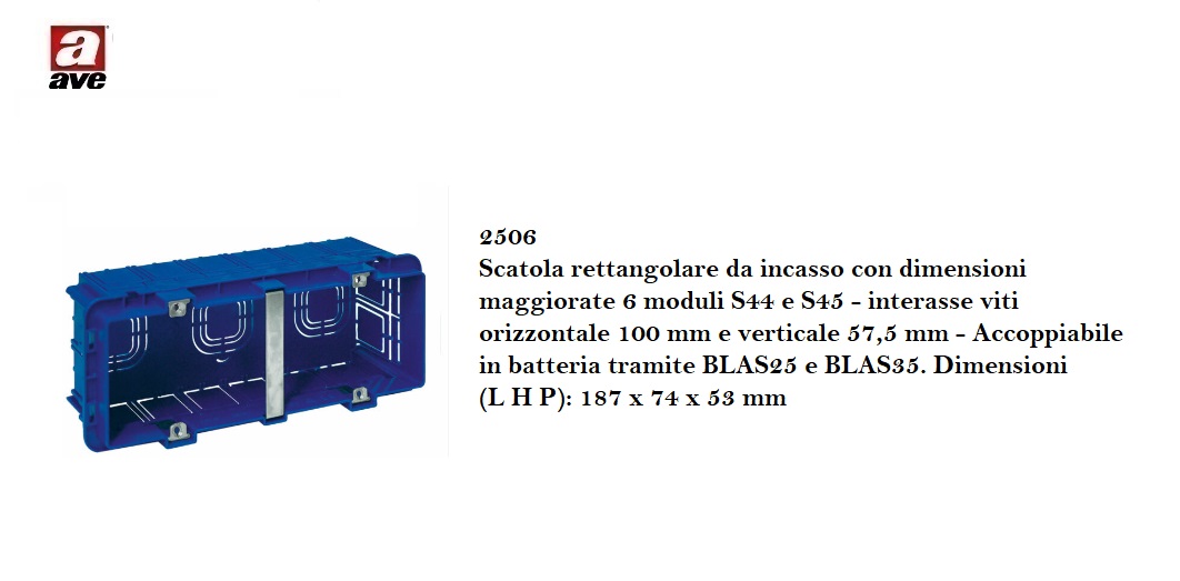 SCATOLA 6 POSTI INCASSO AVE S44 S45 2506