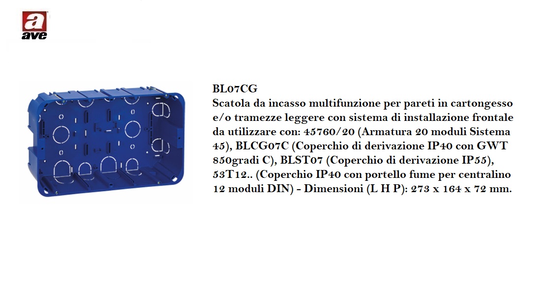 SCATOLA INCASSO 273X164X72mm AVE PER CARTONGESSO BL07CG