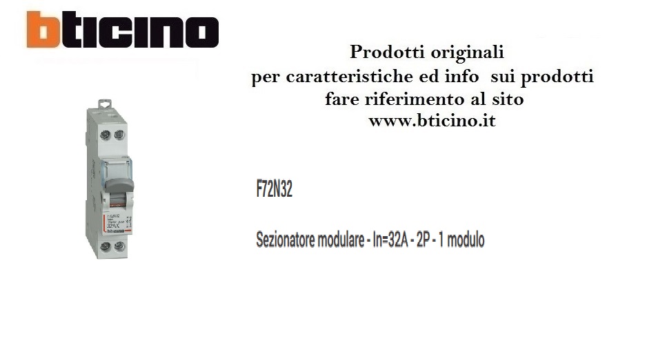 SEZIONATORE MODULARE 32A 1 MODULO BTICINO F72N32
