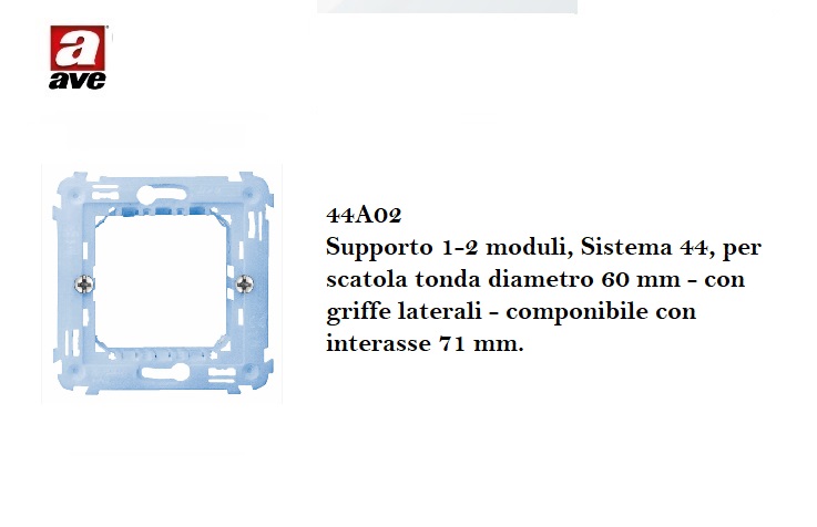 AVE ARMATURA CON VITI 3 MODSISTEMA 44 PER SCATOLE RETTANGOLARI