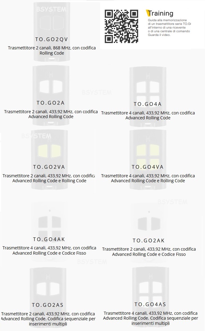 TOGO2A TELECOMANDO 2CH 433MHZ BENINCA 2 CAN.